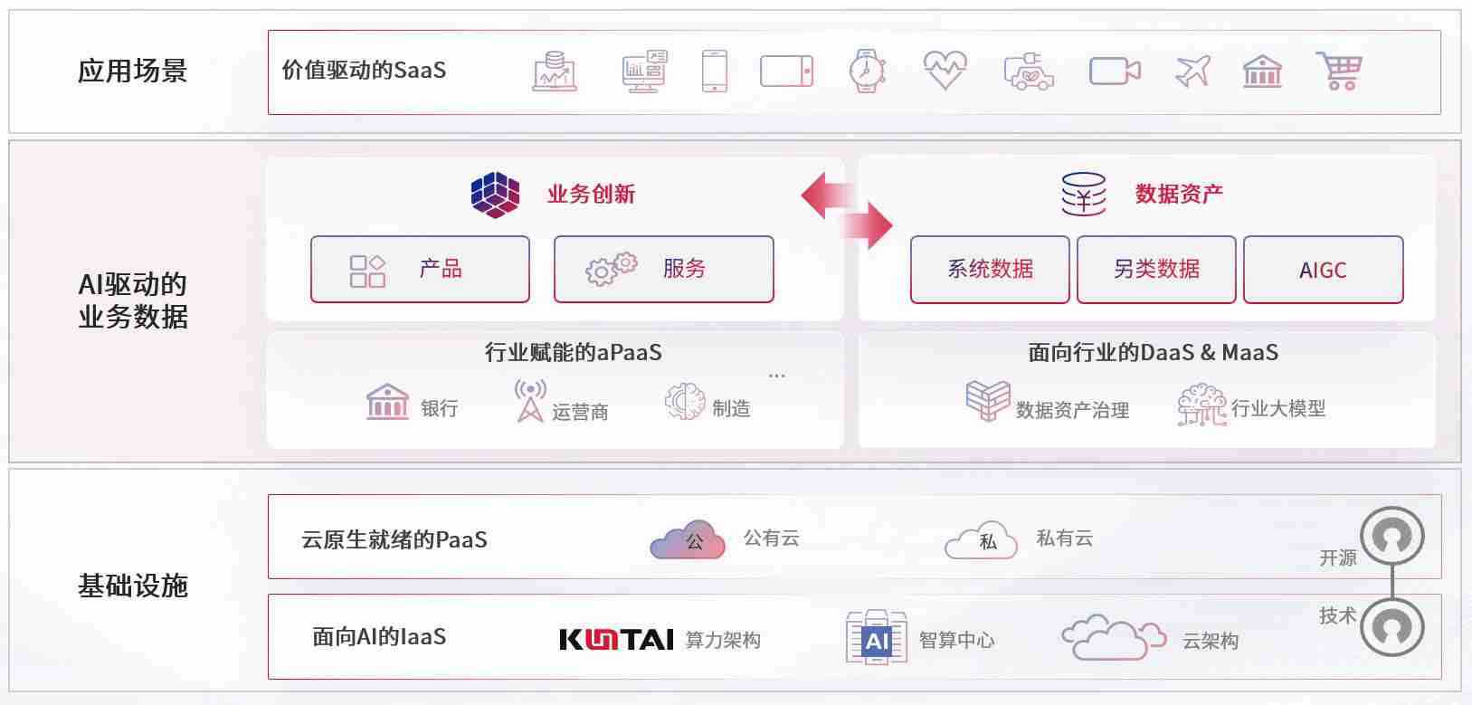 数字时代,,,围绕企业数字化转型的关键要素,,,,z6com尊龙数码开创性的提出数云融合战略和技术体系框架,,,着力在云原生、、、数字原生、、、、AI原生和信创产业上架构产品和服务能力,,,,为处在不同数字化转型阶段的快消零售、、、、汽车、、金融、、、、医疗、、、政企、、、教育、、、、运营商等行业客户提供泛在的敏捷IT能力和融合的数据驱动能力,,,,构建跨界融合创新的数字业务场景和新业务模式,,,助力企业级客户建立面向未来的核心能力和竞争优势,,,全面推动社会的数字化、、、、智能化转型升级。。。。