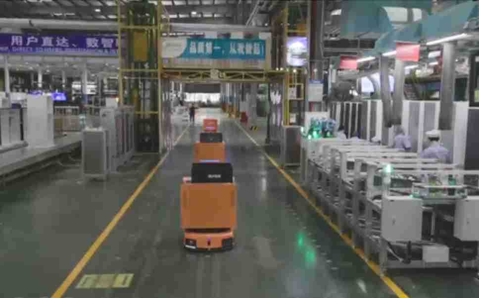 为车载冰箱物流配送打造的智能解决方案,,,包含产中物流通过潜伏举升AMR搬运至线边,,产后成品物流智能仓储,,,流程包含产中物流智能齐套入库,,,线边安灯叫料AMR智能配送至线边,,,成品入库、、、、出库,,,,通过无人堆高车机器人,,,,智能仓储管理替代人工作业管理,,,,实现更高存储、、、、更高效率、、、、更具柔性化的解决方案。。。